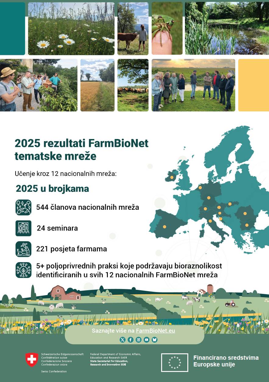 Prva godina provedbe FarmBioNet projekta je uspješno privedena kraju. Pogledajte infografiku i podsjetite se nekih od aktivnosti koje poljoprivrednici poduzimaju kako bi očuvali bioraznolikost.
